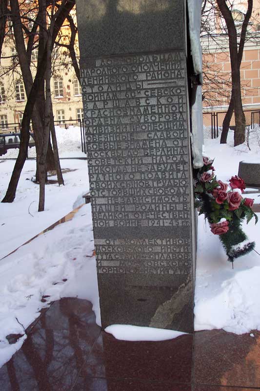 Стела воинам Севско-Варшавской Краснознаменной дивизии от Московского Горного института и Института стали и сплавов