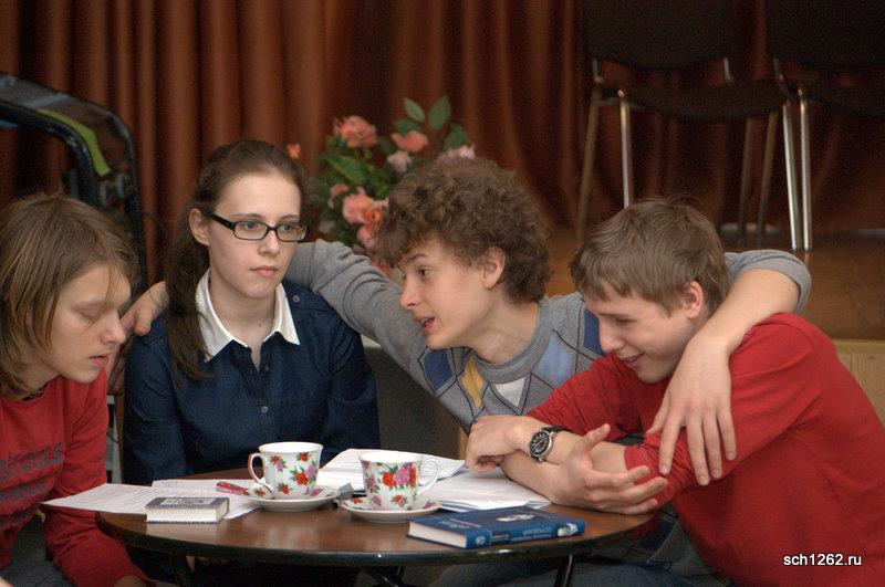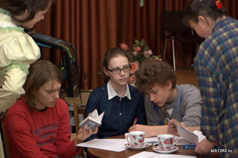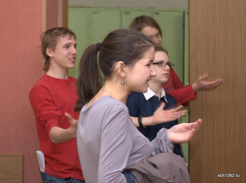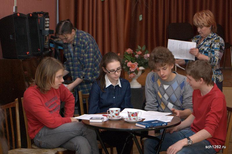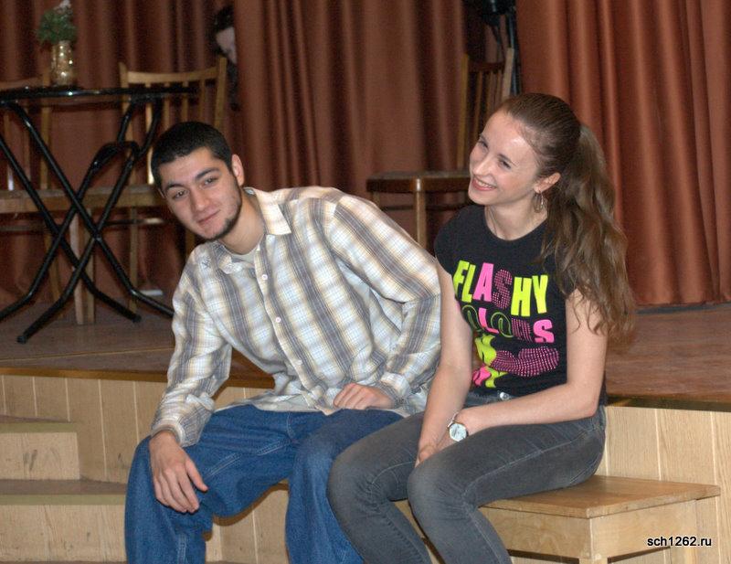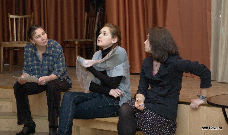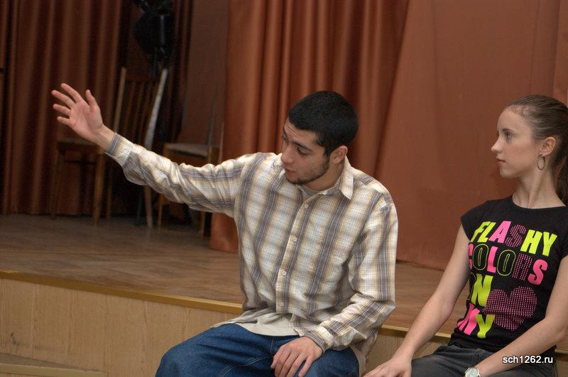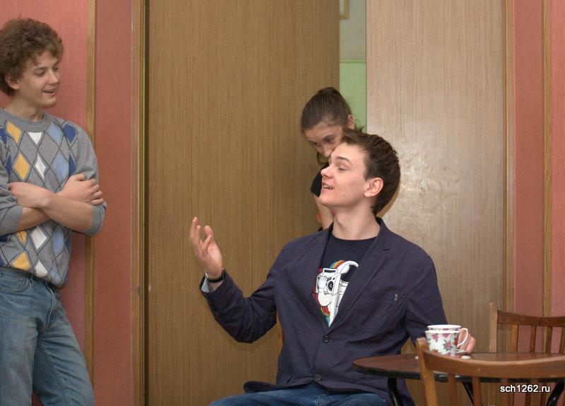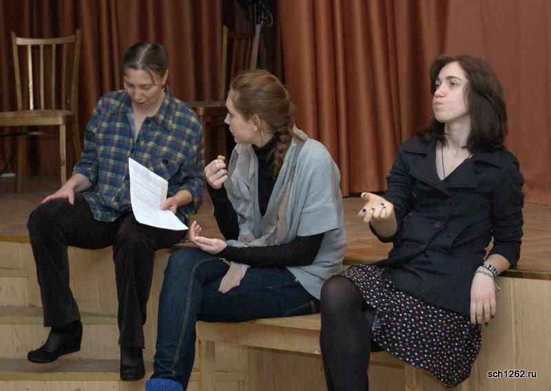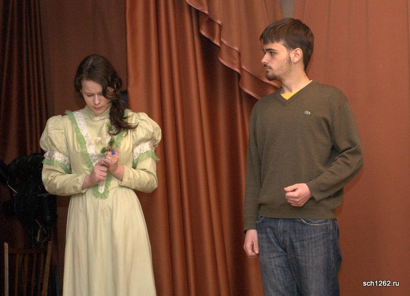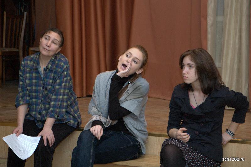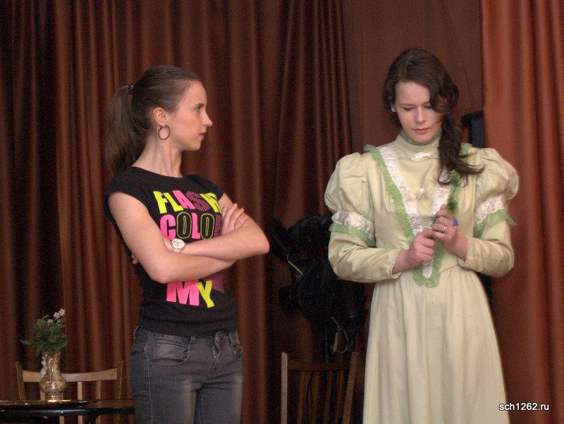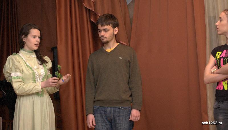 Генеральная репетиция отрывков из спектаклей по произведениям А.Н. Островского в школе 1262 в рамках подготовки к празднованию дня рождения великого драматурга